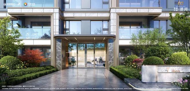 采用香槟金铝型材与灰色石材的入户大厅外墙,香槟金色弧形铝板装饰的门头雨棚,搭配大玻璃面更加通透近人,营造颜值与尊贵并存的归家体验。