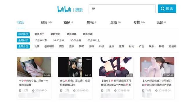 现如今,打开B站App,搜索“萝莉”两字,虽然显示已没有任何内容,但是搜索单个“萝”字,仍出现一系列和萝莉相关的视频内容。